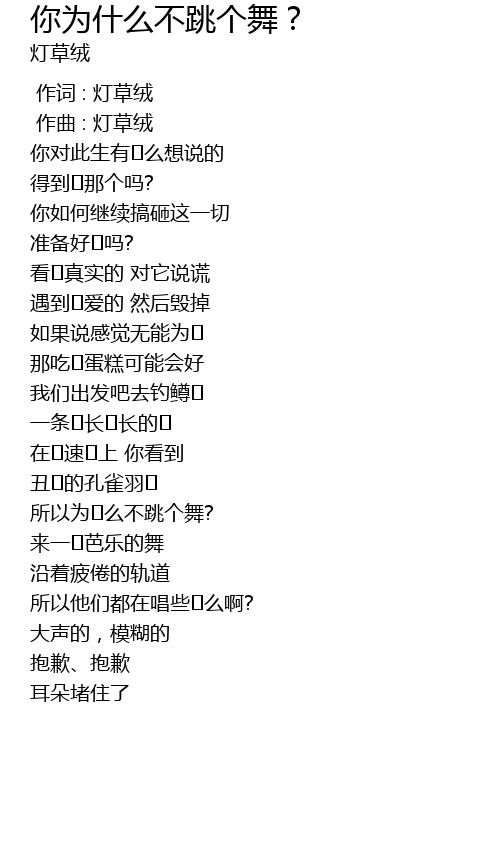 | [01:21.989] | suo yi wei me bu tiao ge wu? |