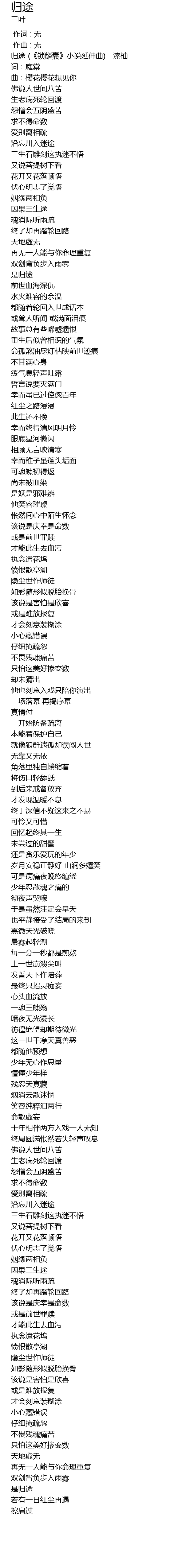 | [00:00.06] | 归途 (《锁麟囊》小说延伸曲) - 漆柚 |