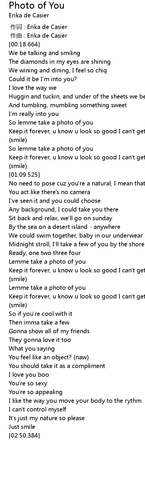 | [00:50.325] | Keep it forever, u know u look so good I can't get enough of you |