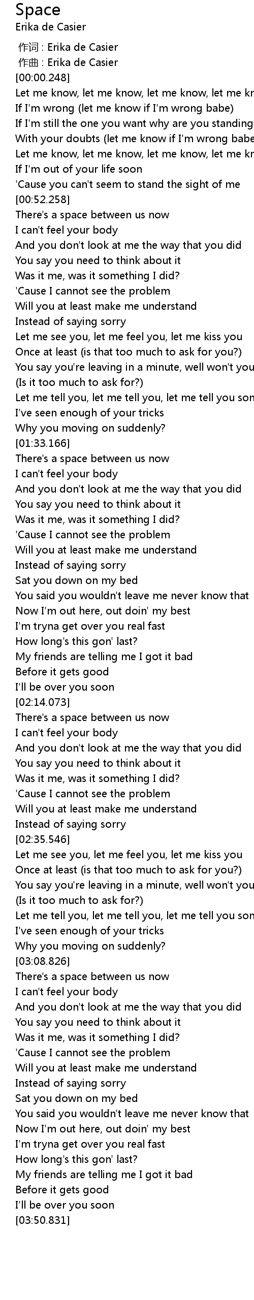 | [00:00.000] | zuò cí : Erika de Casier |