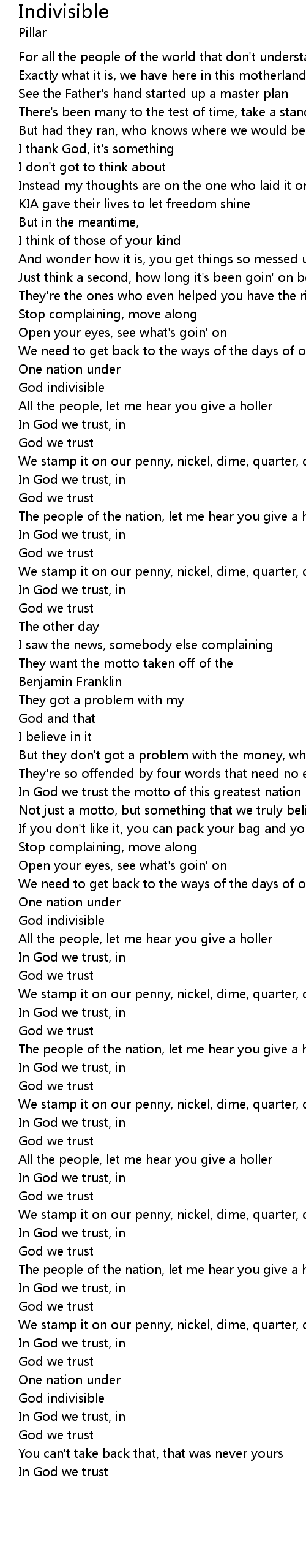 | In God we trust the motto of this greatest nation | |