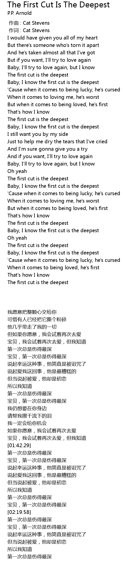 | [02:13.40] | Baby, I know the first cut is the deepest |
