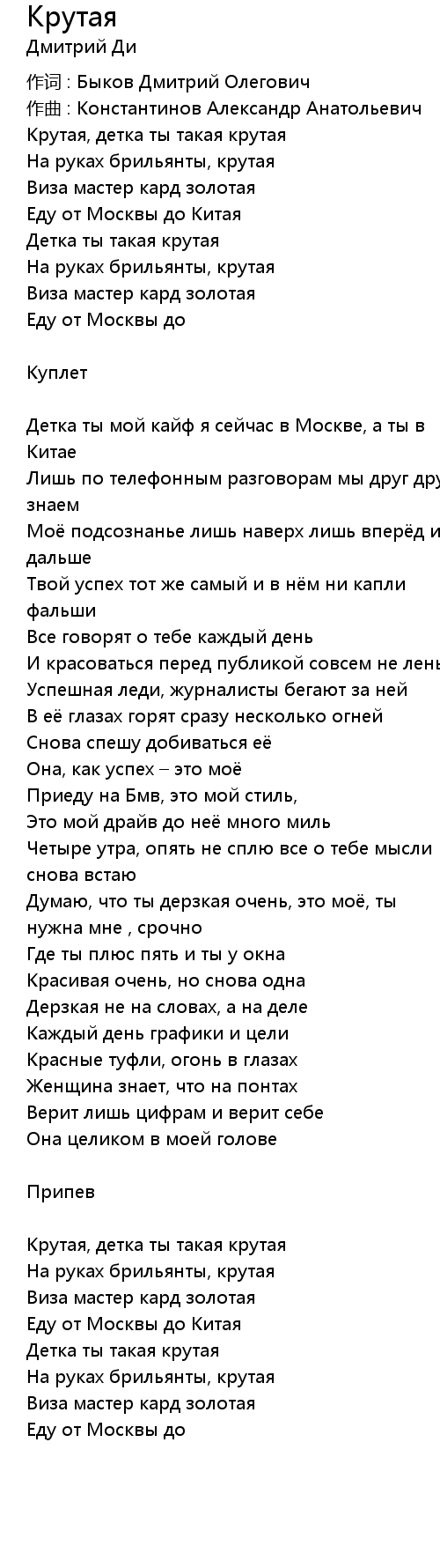 作词 : Быков Дмитрий Олегович |