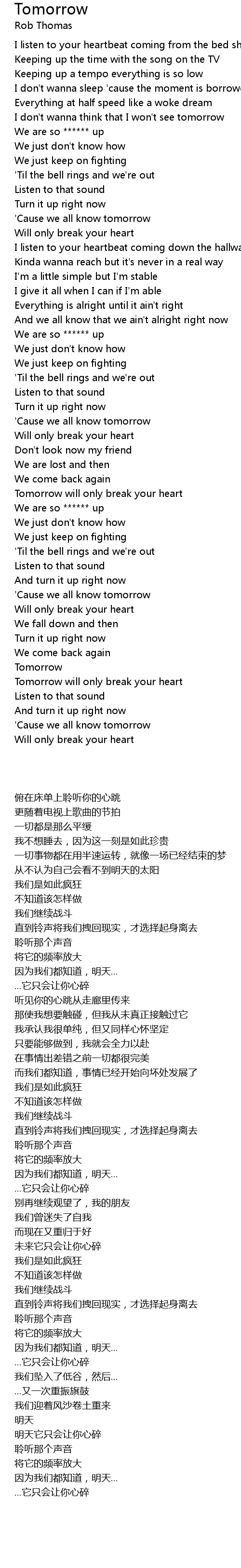 Tomorrow will only break your heart |