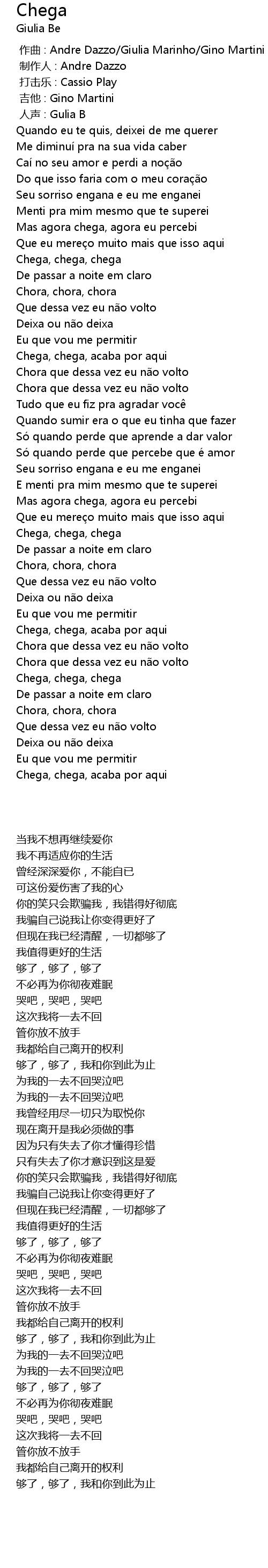 | [00:29.83] | Chega, chega, chega |