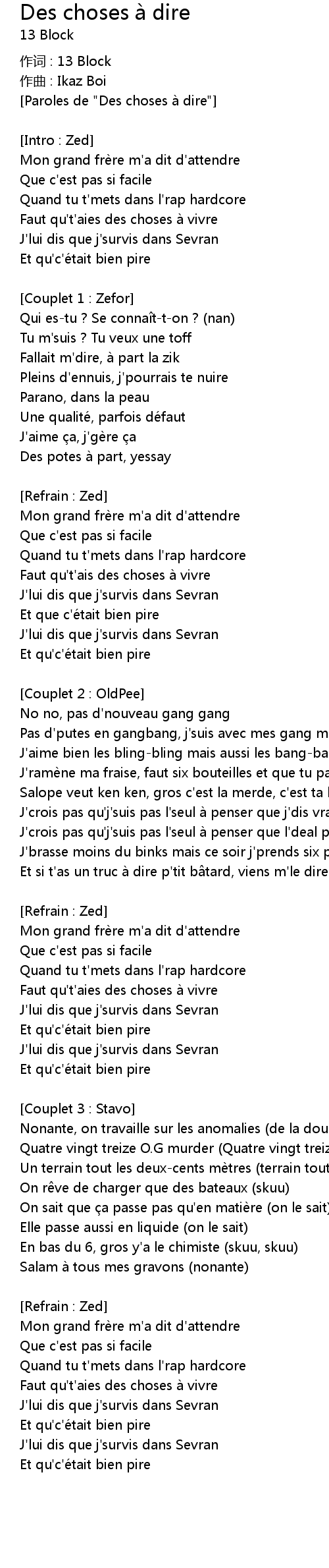 | Et si t' as un truc à dire p' tit b tard, viens m' le dire prè s | |