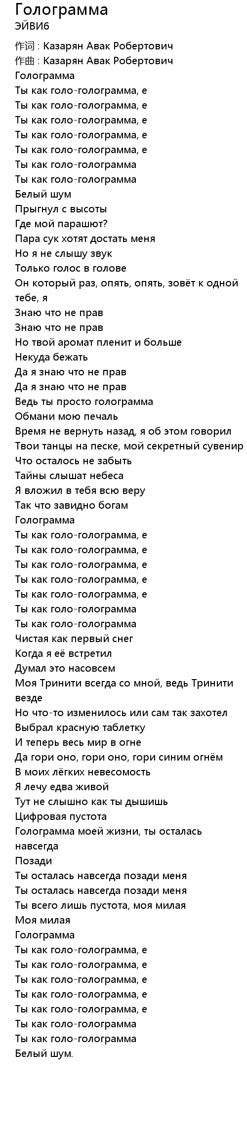 作词 : Казарян Авак Робертович |