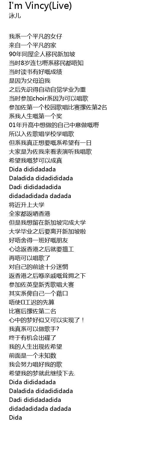 | [00:10.140] | 我系一个平凡的女仔 |
