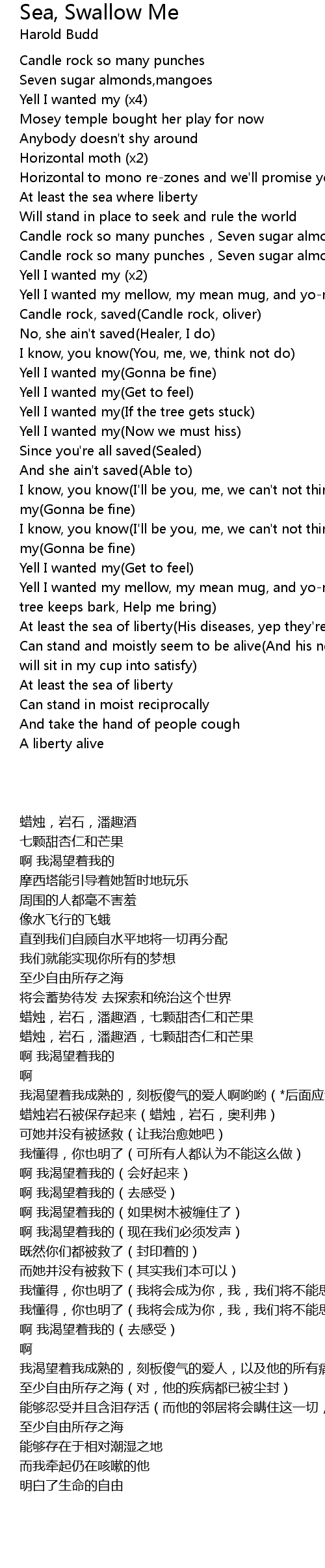 | [02:16.610] | Yell I wanted my mellow, my mean mug, and yomo misease Hence the tree keeps bark, Help me bring |