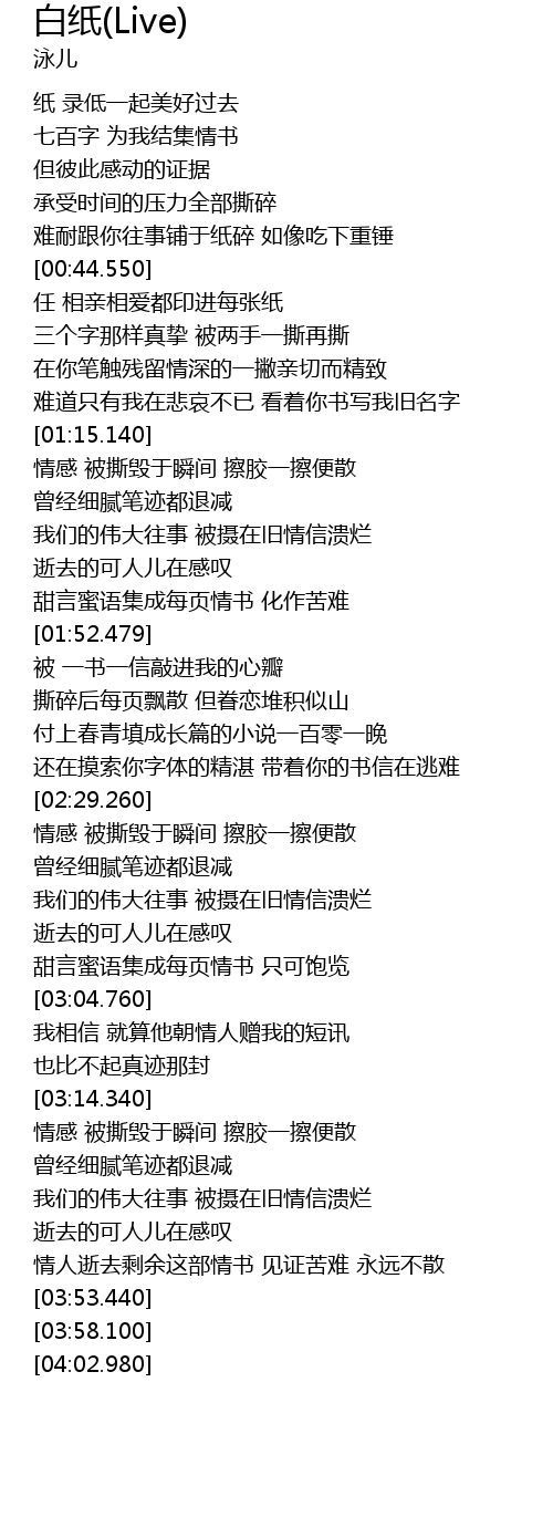 | [03:41.610] | 情人逝去剩余这部情书 见证苦难 永远不散 |