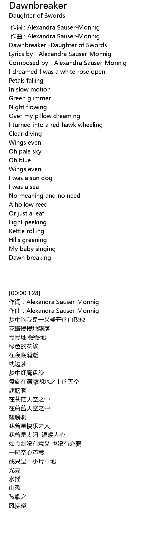 | [00:00.128] | Dawnbreaker Daughter of Swords |