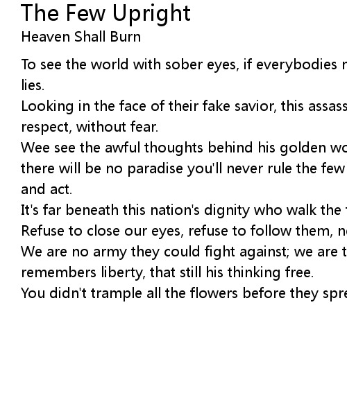 Wee see the awful thoughts behind his golden words, we hear the coming doom, there will be no paradise you'll never rule the few upright, the few, who think and act. |