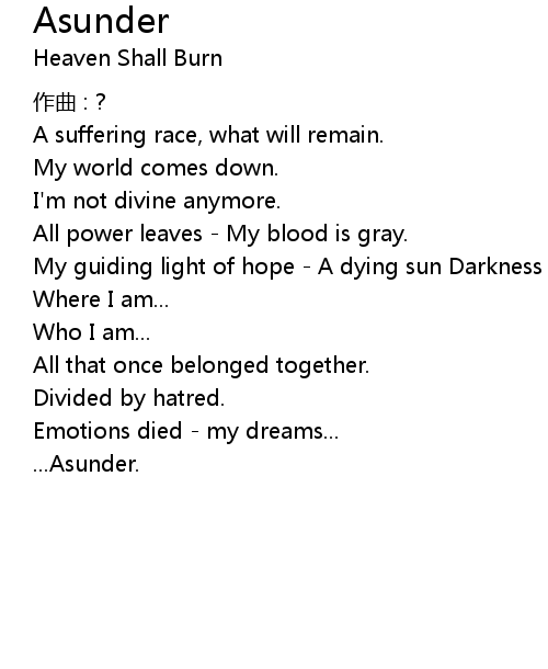 | My guiding light of hope A dying sun Darkness rises, a chill limps our love. | |