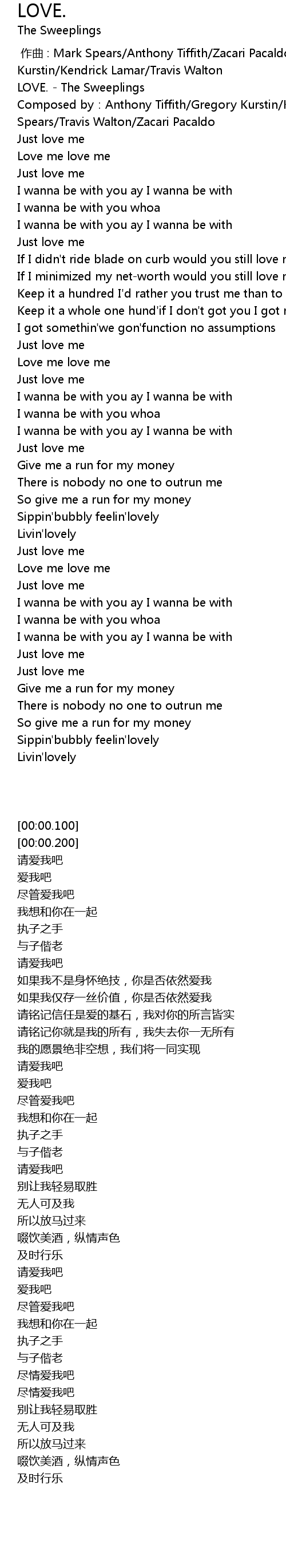 | [00:00.200] | Composed by:Anthony Tiffith/Gregory Kurstin/Kendrick Lamar/Mark Spears/Travis Walton/Zacari Pacaldo |
