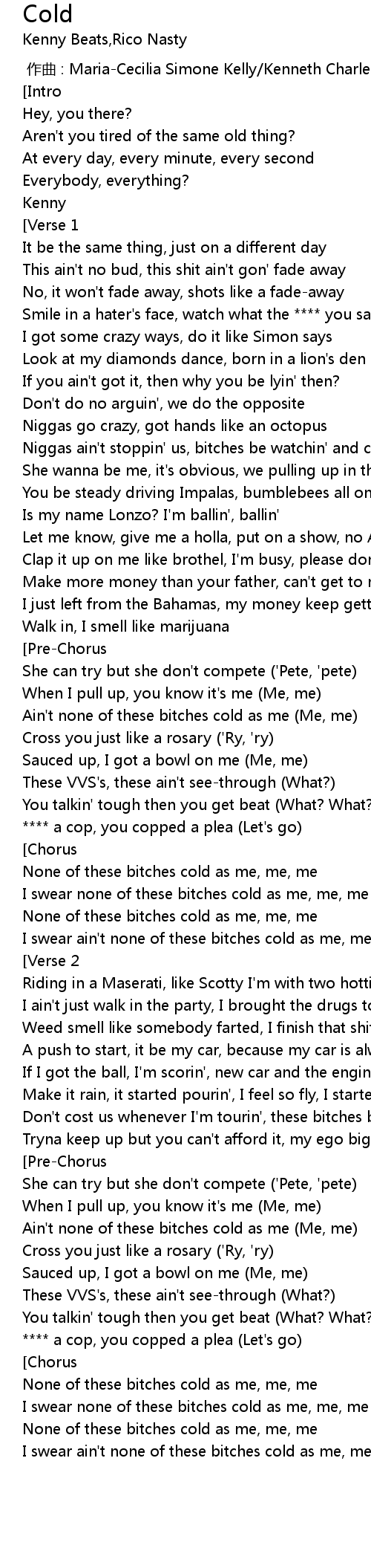 | [01:57.61] | Ain' t none of these bitches cold as me Me, me |