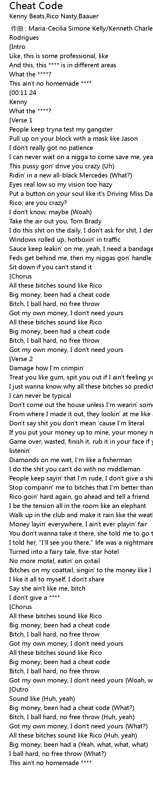| [02:04.72] | Big money, been had a cheat code (What?) |