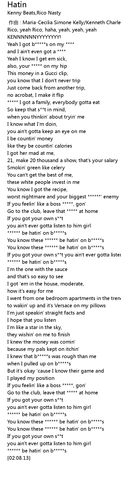 | [01:58.87] | You know these ****** be hatin' on b*****s |