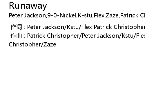 | [00:00.000] | 作曲 : Patrick Christopher/Peter Jackson/Kstu/Flex Patrick Christopher/Zaze |