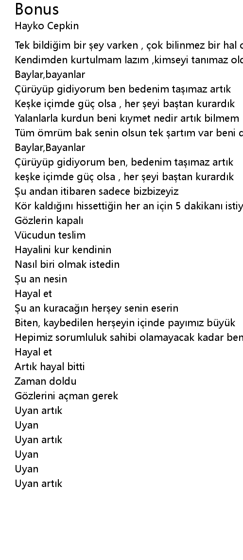 | Tü m mrü m bak senin olsun tek art m var beni dinle | |