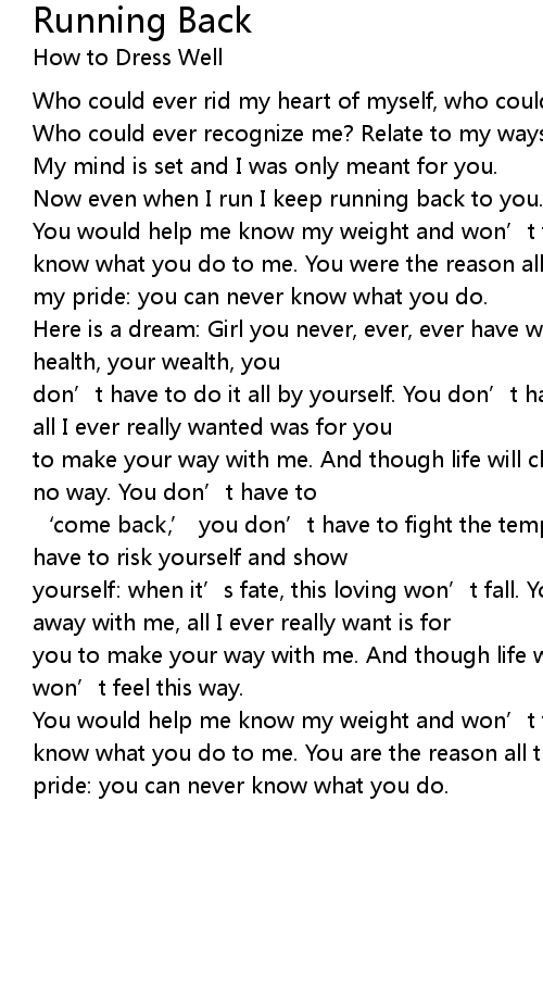 | yourself: when it’s fate, this loving won’t fall. You don’t have to go away with me, all I ever really want is for | |