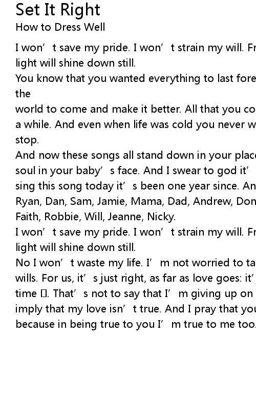 | Song | Set It Right |