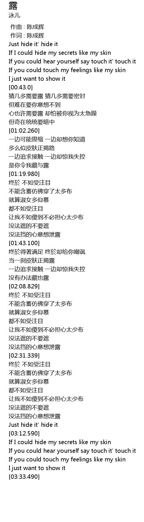 | [00:43.400] | 猜几多需要露 猜几多需要密封 |