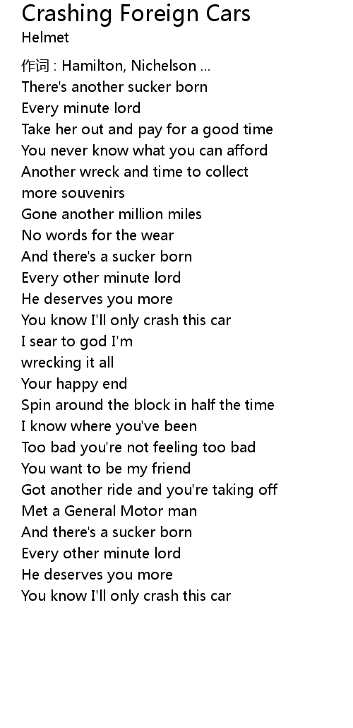 | You know I' ll only crash this car | |