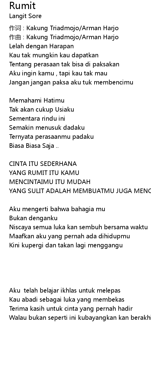 | 作词 : Kakung Triadmojo/Arman Harjo | |
