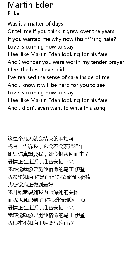 I feel like Martin Eden looking for his fate |