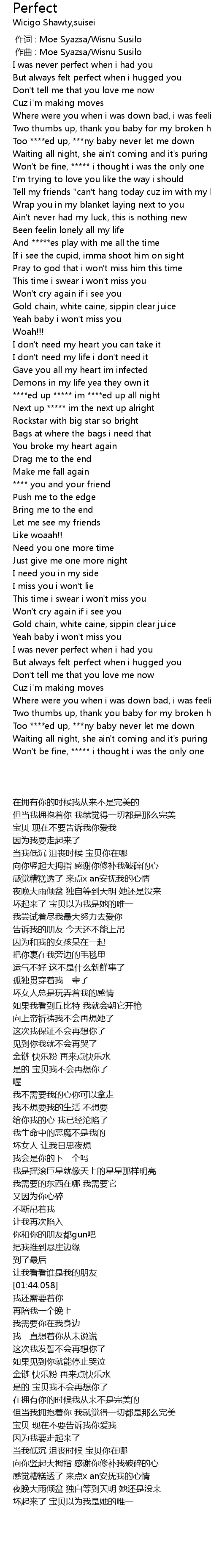 | [02:22.147] | Too ****ed up, ***ny baby never let me down |