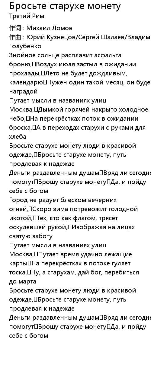 Брошу старухе монету