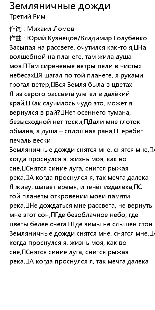 Земляничные дожди  Lyrics