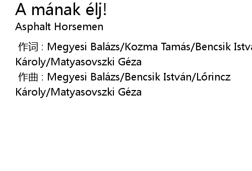 | [00:00.000] | 作词 : Megyesi Balázs/Kozma Tamás/Bencsik István/Lőrincz Károly/Matyasovszki Géza |