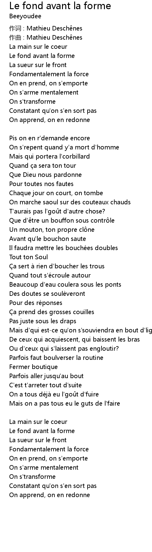 | Mais d' qui estce qu' on s' souviendra en bout d' ligne? | |