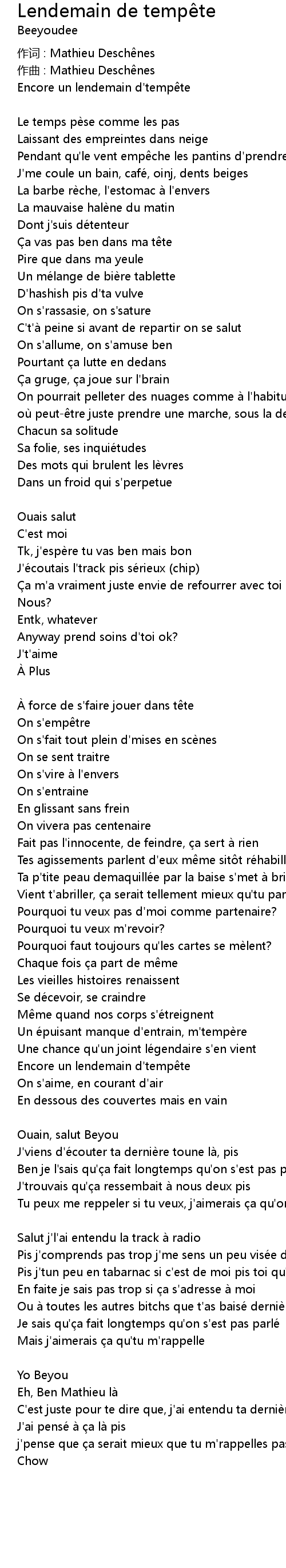 | 作词 : Mathieu Deschênes | |