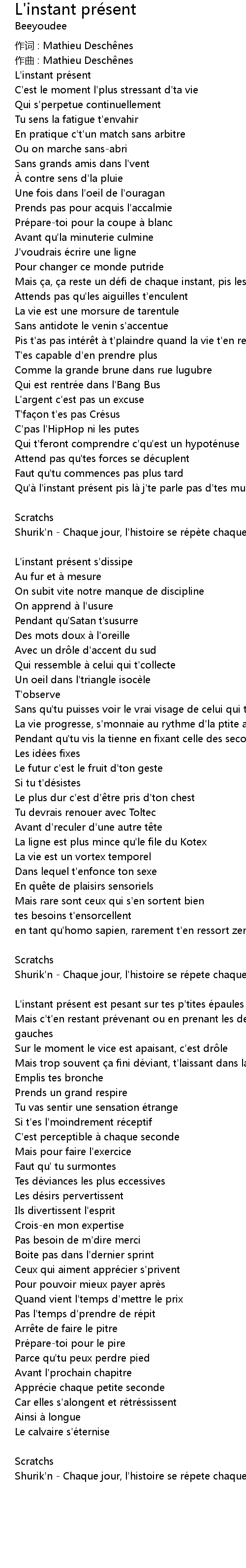 | L' instant pré sent est pesant sur tes p' tites é paules | |
