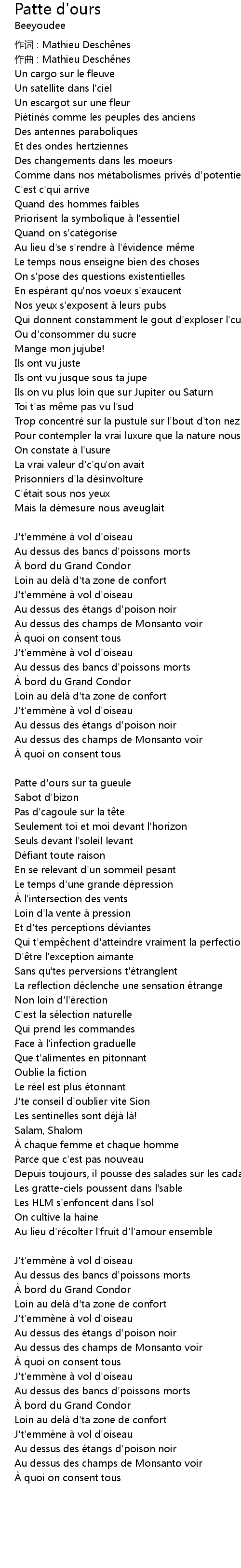 | 作词 : Mathieu Deschênes | |