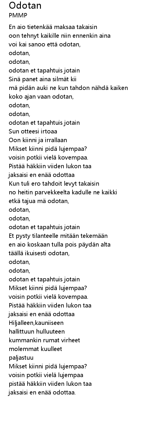 | mä pidän auki ne kun tahdon nähdä kaiken | |
