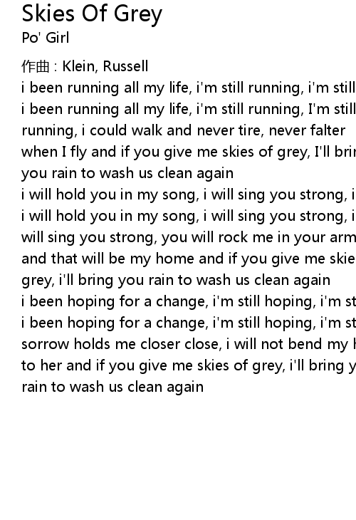 | to her and if you give me skies of grey, i' ll bring you | |