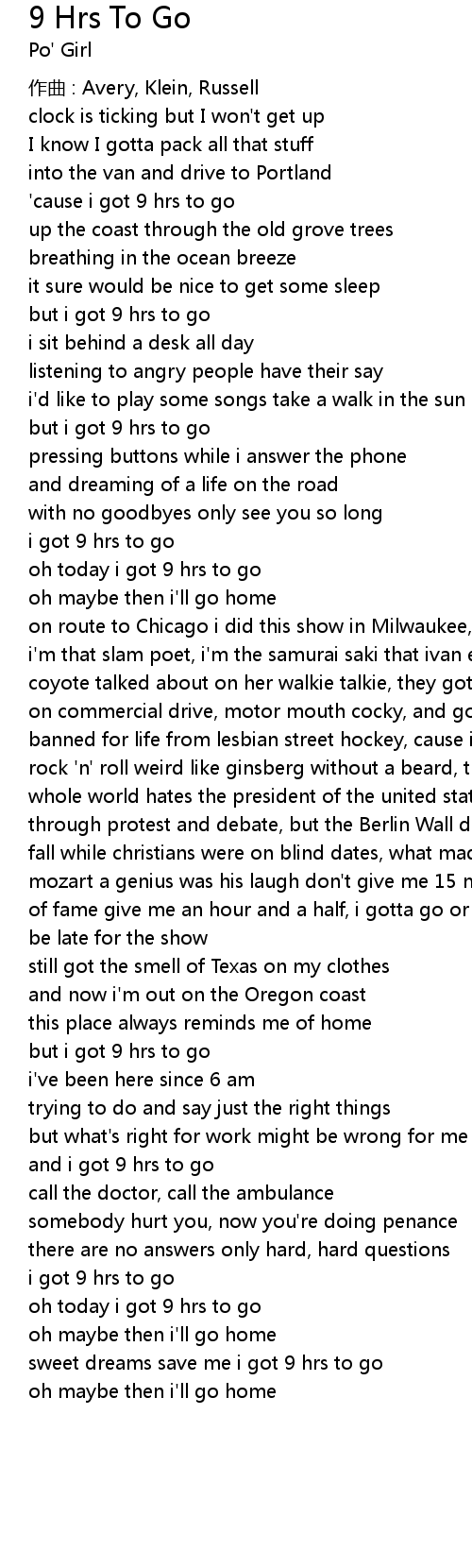 | ' cause i got 9 hrs to go | |