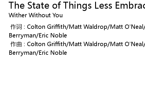 | [00:00.000] | 作词 : Colton Griffith/Matt Waldrop/Matt O'Neal/Jesse Berryman/Eric Noble |