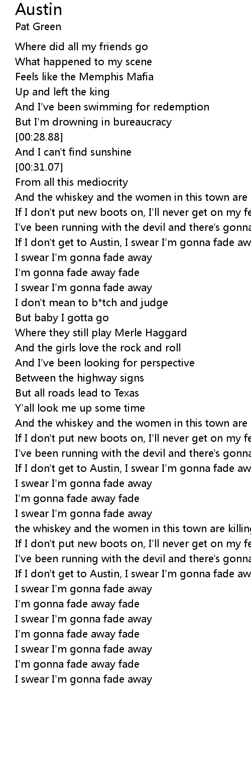If I don't get to Austin, I swear I'm gonna fade away |