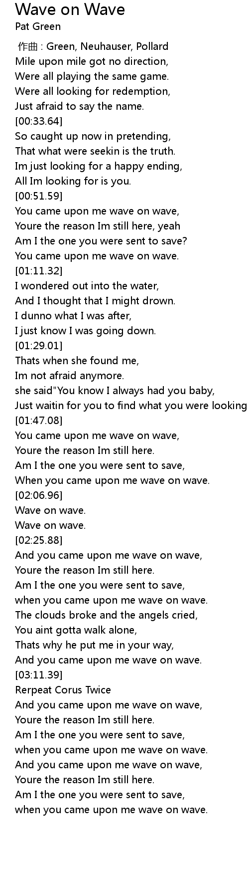| [02:08.06] | Wave on wave. |