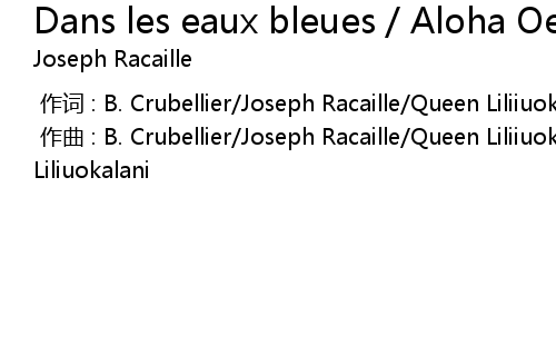 | [00:00.000] | 作曲 : B. Crubellier/Joseph Racaille/Queen Liliiuokalani/Queen Liliuokalani |