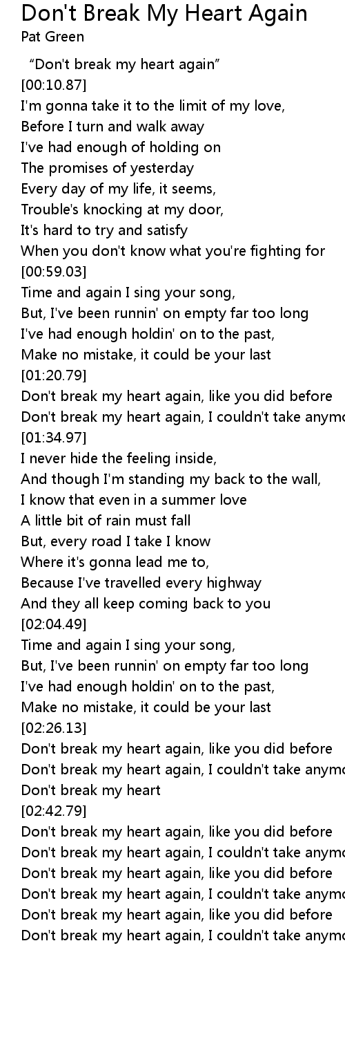 | [00:03.38] | “Don't break my heart again” |