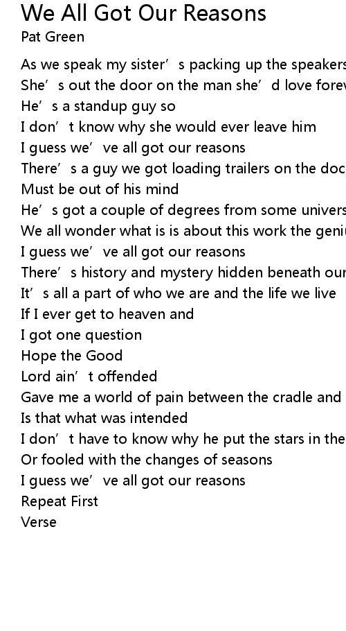 | I guess we' ve all got our reasons | |