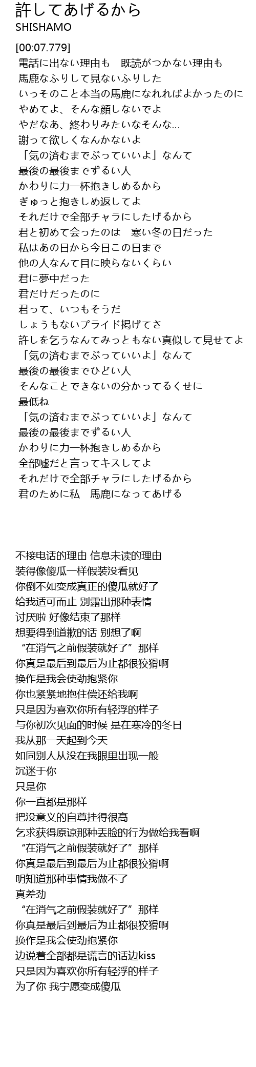 | [02:24.650] | 許しを乞うなんてみっともない真似して見せてよ |