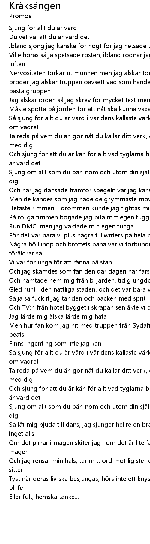 | Sjung om allt som du bär inom och utom din själ kompis jag tycker det klär dig | |