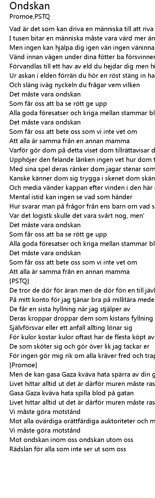 | Men de kan gasa Gaza kväva hata spärra av din gata | |