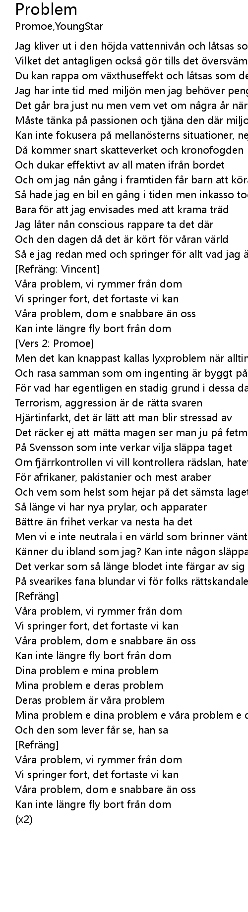 | V ra problem, vi rymmer fr n dom | |